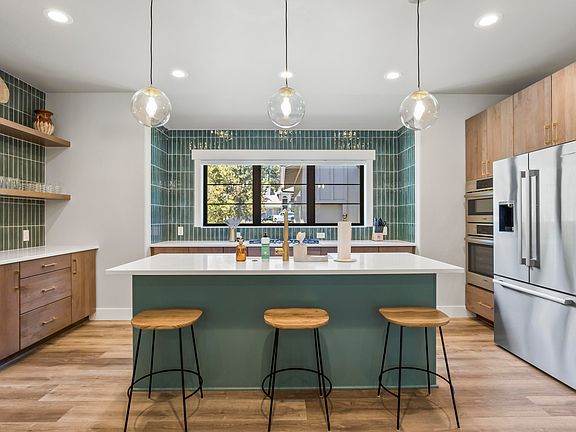 Enjoy refined living in this beautifully designed home set within one of Sunriver's premier golf course communities. Soaring ceilings and expansive windows define the open-concept great room, creating a bright space for entertaining or relaxing. The gourmet kitchen features quartz countertops, designer tile, and premium stainless appliances. The luxurious primary suite includes a spa-like bath with soaking tub and walk-in shower. Two additional bedrooms offer flexibility for guests or a home office. Step outside to a covered patio and private yard. The spacious 856 sq ft garage includes an attached gym/studio—ideal for workouts, hobbies, or creative projects. Just minutes from Sunriver's trails, SHARC, and Village amenities, this home blends modern comfort with resort-style living—perfect as a full-time residence, vacation getaway, or investment. Furniture and bikes are included in the sale. Excluded items are the artwork and paddle boards.