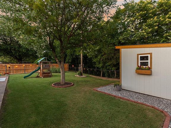 **back on market of no fault of seller** Welcome to your own private oasis nestled in the heart of the city. Backing up to a serene greenbelt, this home offers a rare connection to nature with regular visits from deer, turkey, and other wildlife, it truly feels like country living without sacrificing convenience. Inside, you’ll find a warm and inviting layout with a split floor plan, placing the primary suite on one side and secondary bedrooms on the other for added privacy. The home is filled with natural light thanks to an abundance of thoughtfully placed windows. The living area features wood-look tile throughout, blending durability with style. The primary suite includes a spacious walk-in closet complete with built-ins for effortless organization. Custom features throughout the home include a built-in desk and cabinet for the ideal home office setup, and a mud bench drop zone at the entry for everyday functionality. Step into the over sized garage and you’ll find a storm shelter for peace of mind and a custom-built storage cabinet. Outside, the backyard offers a 10x12 custom-built shed, a full sprinkler system, and unobstructed views of the greenbelt. This home has been a haven for its current owners—and now it’s ready to be yours.