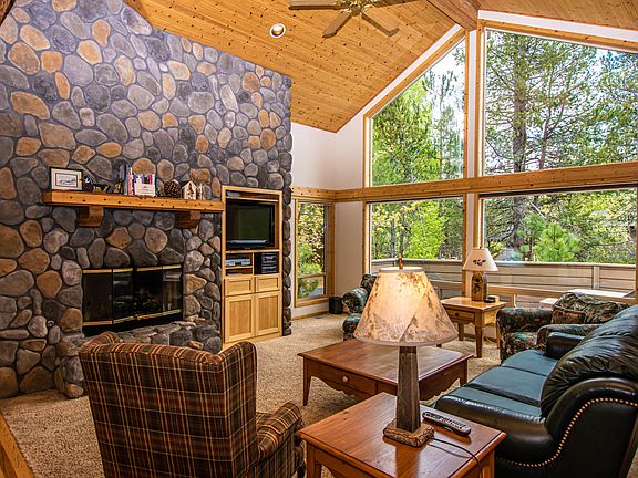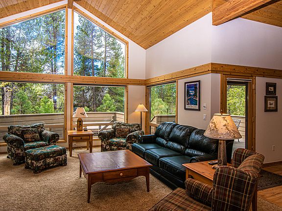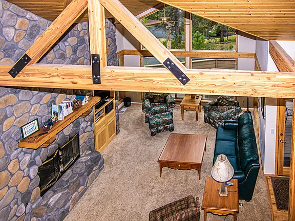 This 2,006 sf home with 4 bedrooms plus loft, 3 baths has a great location on a quiet street away from busy roads, yet close to the SHARC. The master bedroom, bedroom #2, kitchen, living room, dining room and laundry room are located on the entry level. Solid red oak t&g strip flooring, hard maple cabinets, (6) panel interior doors, solid t&g knotty pine ceiling paneling. Many rooms and baths are vaulted. Kitchen with tile counters and island. Living room with floor-to-ceiling river rock wood burning fireplace and huge view windows overlooking forested backyard. Master bath with dual vanities, shower and skylight. Laundry room with sink and tile counter. 2nd level with two bedrooms plus loft and vaulted jack & jill guest bath with single vanity, tile counters, tub/shower and skylight. Oversized two car attached garage. Large back deck (partially covered) and 2nd lower deck with hot tub/spa. Sold turnkey - all furniture and personal items convey at no cost to the buyer.