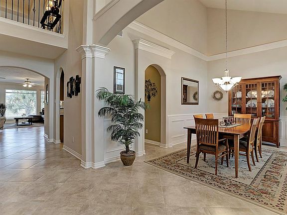 Amazing opportunity to own a beautiful home with all the bells & whistles! Shows like a model home! Breathtaking views! Enter the dramatic two story foyer thru mahogany leaded glass door & immediately see views of the lake through the oversized paneless windows! Oversized 18" ceramic tile on the diagonal in foyer, family, kitchen & Formal dining room w/ double crown molding & rope lighting. The kitchen is massive w/granite counters, 42" cabinets, SS appliances, gas cooktop, microwave & open to spacious family w/ gas log fireplace & views of the water & private dock. The master suite has hardwood Hickory floors, granite counters w/dual vanity, sep shower, whirlpool tub & spacious walk in master! Upstairs has game room, 3 spacious bedrooms, one includes private bath+ walk in closet. 2 bathrooms up! Beautiful private balcony overlooking water where you can ride in kayaks, paddle boats & fish! Recently updated AC units to Environment friendly Puron 14 seer units. Too many upgrades to list!