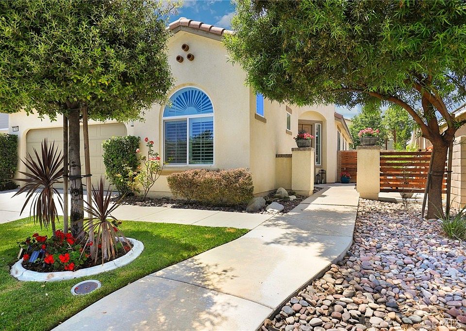 Discover this enchanting 3-bedroom, 2-bath gem nestled in the highly coveted Rosena Ranch community! As you arrive, you'll be captivated by the instant curb appeal, highlighted by a charming water fountain and an inviting courtyard. Step inside to find a beautifully open and flowing floor plan, where the kitchen gracefully opens to the family room, adorned with custom-built shelves and a cozy fireplace. The kitchen is a chef's delight, featuring a vast walk-in pantry, a refrigerator, and a central island perfect for culinary creations.