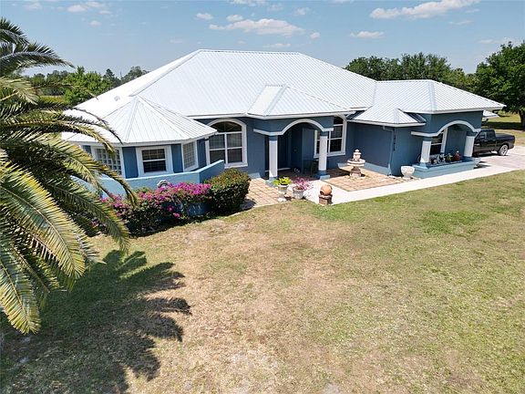 Beautiful Country Paradise! This manicured estate offers 2.5 Acres, fully fenced w/ 3 bedroom, 2.5 baths, 2 car garage, w/ 12 foot ceilings, office, great room, formal dining, morning nook, large kitchen with bar & ss applicances, granite tops, butlers pantry/mudroom, foyer, laundry rm, formal living room, master suite w/ tray ceilings, large tub, huge walkin shower, his & hers closets, large covered patio for entertaining. Outdoors you'll enjoy mature trees, park benches through out the property, and a large gazebo for relaxing & enjoying the outdoors! Sale includes a NEW METAL ROOF! chicken coops, small barn, hand pump on well, water system, washer & dryer. This is a serene and calming life! Gorgeous sunsets, wildlife in abundance, animals & farming & plenty of privacy! Near the Kissimmee Prairie State Park, offering many nature related activities! Also available for sale are two additional adjoining lots on each side of this property, each parcel is 1.25 acres for 40k each lot. Enjoy a total of 5 ACRES!