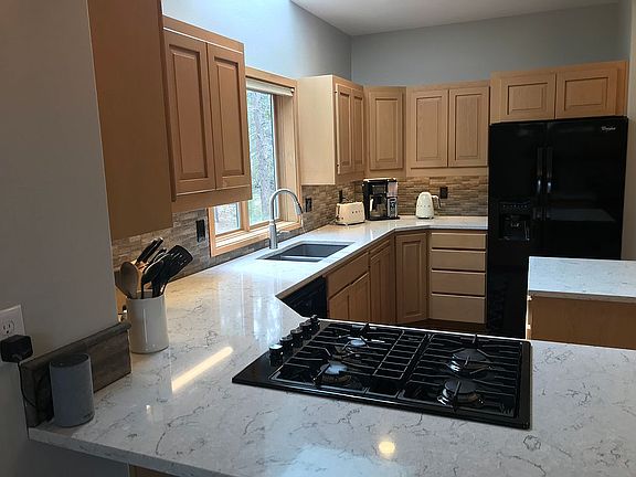 Beautiful family home in Sunriver. Decks face both east and west so sunshine all day long. Quiet north end location. Updated 2020, with new flooring throughout. New quartz counters in kitchen and half bath. Heat and glo fireplace insert. AC, forced air. Master upstairs, kitchen great room upstairs. 2 bedrooms, laundry, bathroom downstairs. Sunlight and windows throughout. Fully furnished. Excellent rental history. See on Air bnb. Double car garage with owners storage.