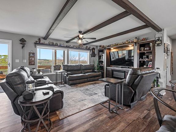 Awesome home on over 5 acres resting upon a hill with incredible views. So many wonderful features to offer that it is hard to list them all. But I'll try. UBC built home with 2x6 construction. Upgraded flooring and countertops, huge walk-in pantry, home theater, above ground pool, hot tub, greenhouse, chicken coop, peaceful winding path to mailbox, bridge over natural seasonal spring, fantastic front covered porch with exceptional views, private back patio with cool water feature excellent for seclusion or entertaining, Ute water, 2 large storage sheds, 3 car garage w/220, complete RV hook-up and much more!