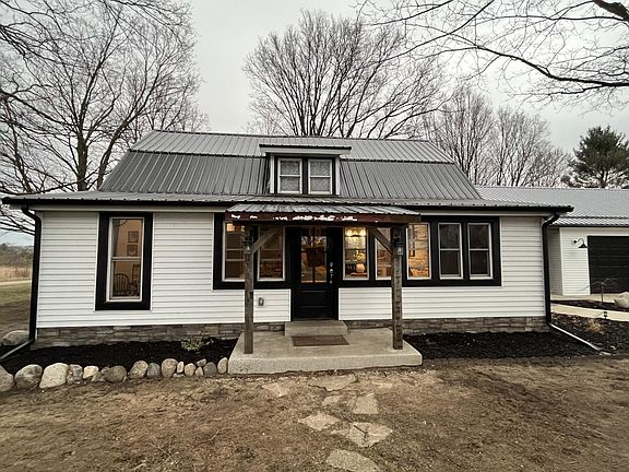 Home was stripped to the studs in 2021 and totally remodeled with new metal roof, vinyl siding, windows, doors, 2 mini split heating AC units, all new wiring & plumbing, complete spray foam insulation. Inside main floor features all stone gas fireplace, new Granite kitchen counters, all new appliances, new flooring throughout. second story features Primary suite with walk in tile shower and new vanity. Also features 32x32 attached garage with mud room breezeway, oversize concrete pad, sidewalks, and large concrete patio overlooking the property. Very solid hip roof barn, smaller tool shed chicken coop. Property is 10 mostly wooded acres, great hunting, security system and very Private setting