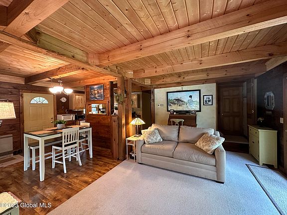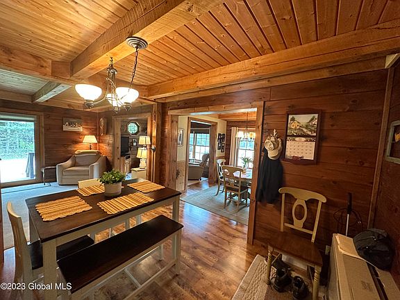 Immaculate Lake George home close to all that the Adirondacks have to offer! This charming 3 bed / 2 bath home sits on over two acres and is minutes from Lake George, Lake Luzerne, Fourth Lake and the Hudson River. Sitting at the base of a smaller mountain side, the property offers a variety of area hiking. Features include rustic wood beams & knotty pine throughout the downstairs, first floor primary bedroom and laundry, newer furnace, screened back porch, open side porch and much more! Zoned residential commercial, so there is also potential to run your business from the property. Located close to I-87, allows for easy and convenient travel, along with vacation rental opportunity. This property is a must see. Don't miss out. Book your showing today!