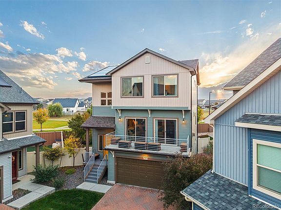OPEN HOUSE 10/18 FROM 12PM-3PM! Welcome to your new home! This spacious single-family home is perfect for your get-togethers and is an entertainer's dream. The kitchen boasts a HUGE center island with room for seating, and plenty of cabinet space. There is beautiful wood flooring all throughout the main level. All of the stainless steel appliances stay with the home, along with a gas stove. The kitchen is open to the dining room and the living room, where the two sliding glass doors and windows let in plenty of natural light. Exit through the doors onto the spacious balcony; one of THREE outdoor spaces. The dining room exits onto the second outdoor space; a SW facing balcony which is perfect to take in the views and to barbeque. Head upstairs to the primary suite, which has an en-suite bathroom and a walk-in closet. Two additional bedrooms, a full bath and the laundry room complete the upper floor space. The walk-out basement is perfect for a TV room, gym and/or an office. The third outdoor space is perfect for a fire pit, with plenty of room to entertain. The yard is beautifully landscaped with gorgeous bushes and flowers and trees. Perfect outside oasis! There is a sprinkler system in the front and back. The roof and the siding are new, and the Tesla solar system will be paid off at closing. This home sits just two miles from the A-Line light rail, and it's a quick drive to jump on I70 and HW470. Hurry on this lovely home!