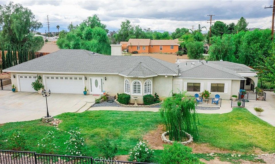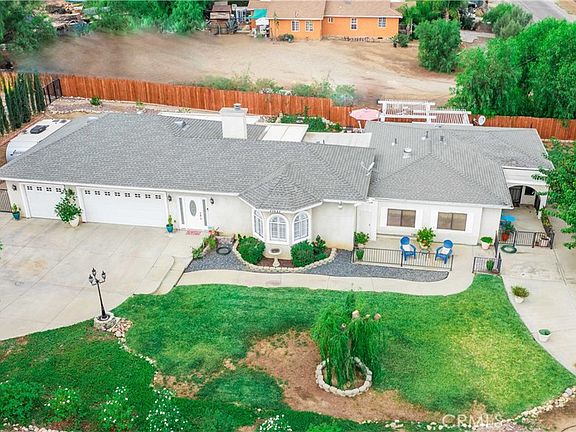 STUNNING REMODELED SINGLE STORY HOME ON A FULLY GATED 1/2 ACRE CORNER LOT! Rural living with a high-end feel. This meticulously maintained 1/2 acre property is your own private oasis and an entertainer's dream! With plenty of outdoor spaces to choose from to sit and enjoy your morning cup of coffee and listen to the peaceful silence. This well designed lot has ample parking with 2 driveways, 2 different spaces for RV Parking, and a spacious 3-car attached garage with built-in shelving and storage. Attached to the garage is an oversized laundry room that will knock your socks off! This multi-terraced property has 4 separate gated sections and a mini-orchard with approximately 15 fruit trees. Want to add an ADU or guest house? There is a corner portion of the lot that is fully fenced off for anything your heart desires, perfect for ADU, pool, pets, you name it! Truly exceptional, the custom designed floor plan features a warm, welcoming interior, with large entertainment spaces, flow-through living/dining area, with and updated stone fireplace, and newly upgraded WPC 100% waterproof luxury vinyl plank flooring throughout. The Master Bedroom is like a private getaway, with its own separate entry, and oversized walk in closet. Both bathrooms have been recently remodeled with tile flooring, updated vanities, and custom tile work. Plenty of places to sit and have a bite to eat with a dining nook in the family room with newer plantation shutters in the alcove, as well as a more formal dining area attached to the kitchen. Speaking of the kitchen, this gorgeously remodeled kitchen has granite countertops and new professional Kucht gas range! Or, take it outdoors and host an alfresco party in the wonderfully secluded backyard which features a NEW large aluma-wood patio cover with recessed lighting, a NEW stunning, tranquil water fountain, and an above ground heated spa for a party of 1, 2, or up to 6. Out here you will also notice the huge outdoor kitchen with built-in BBQ, pass-through window to interior kitchen, and plenty of storage and countertop space! The go-to spot for year round fun! The Sellers have spared no expense on recent upgrades including: NEW Rheem HVAC furnace with carbon filter, air-scrubber, and ultraviolet light, NEW main gas line, NEW hot water heater, NEW wood fencing along left side of property, NEW Aquasana whole house water filtration system with custom outdoor cabinet, and NEW Reverse Osmosis Water System! Let's open escrow!