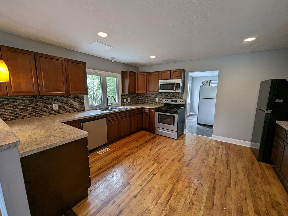 This 3 bedroom 2.5 bath home has gorgeous hardwood floors, stainless steel appliances, tiled bathrooms and high-end fixtures throughout. Brand new vinyl flooring lines the 2nd floor and each bathroom features hand-crafted tile work.