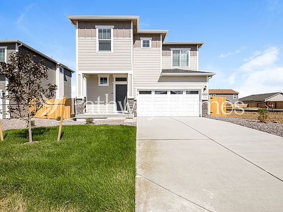 This home offers a spacious open-concept layout with a versatile flex room, ideal for use as an office or den. The kitchen, the heart of the home, features energy-efficient stainless steel appliances, a large kitchen island, a walk-in pantry, and a quartz-topped breakfast bar. The seamless flow between the kitchen, dining, and family rooms is perfect for gatherings, with natural light illuminating the dining area and sliding glass doors leading to a large covered patio. The expansive master retreat includes a luxurious bathroom with a double-sink vanity, soaking tub, glass-enclosed shower, and walk-in closet. With four additional bedrooms, a fenced backyard, and front yard landscaping, this home is perfect for comfortable living. The community offers unmatched convenience with easy access to Denver International Airport, downtown Denver, and Barr Lake State Park for outdoor adventures.