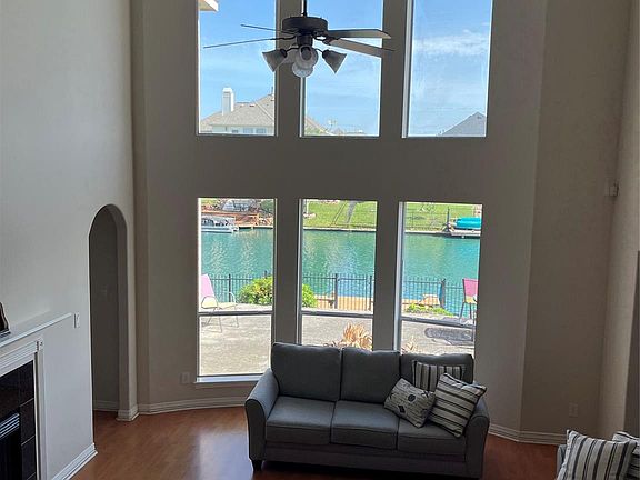 Massive windowsOutdoor seating areaWater viewsSoaring ceilingsBreakfast areaDen with a fireplace