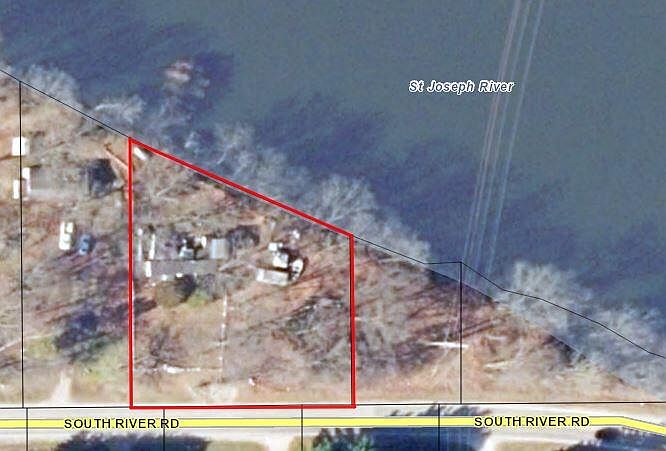 Approx 176 ft of St. Joseph River Frontage. Being sold AS IS, WHERE IS. Seller will not be removing or clearing any items. Listed as vacant land because house and all structures are uninhabitable and need removed. Please use caution if walking property as there is personal property and debris scattered. Do not use steps to river or step on dock as it is unsafe. ALL INFORMATION AND MEASUREMENTS TO BE VERIFIED BY BUYER.