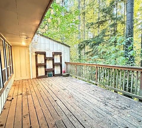 Huge deck and small private private fenced yard. Wide concrete drive and parking area leading to a spacious 2 car detached garage.