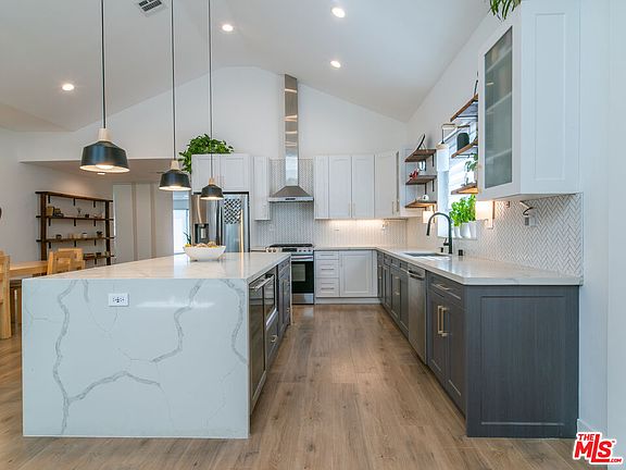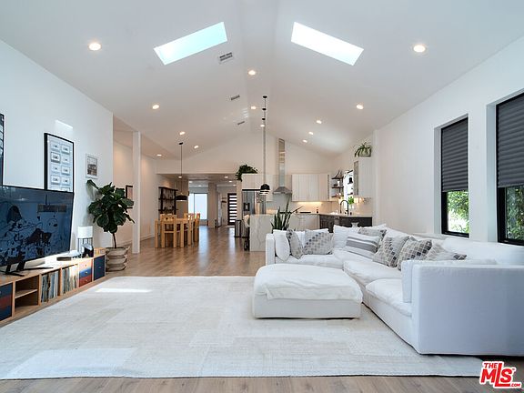 Stunning and spacious remodeled home for modern and comfort living in the highly coveted Encino Park. At the entry, dramatic high ceilings and skylights flood in natural lighting, additional recessed lighting and cascading laminate wood flooring throughout. At the heart of the house, the gourmet kitchen with oversized waterfall island with seating, abundant cabinet space, natural wood open shelving complimented by herringbone backsplash. Complete with stainless steel appliances, including a built-in wine fridge, the kitchen seamlessly transitions into the spacious living room, a perfect space for hosting gatherings and enjoying quiet evenings. Additionally, there is a charming sitting room for conversations or a cozy reading area. Retreat to the primary bedroom suite, featuring vaulted ceilings and a generous walk-in closet. Large sliding doors open to a fresh landscaped backyard deck offering a peaceful sanctuary for morning coffee, fresh morning and evening breezes. Luxurious designer bathroom retreat with floor-to-ceiling tile, dual vanity sink, a freestanding tub, and a walk-in waterfall shower. Guests will appreciate the privacy and comfort of the well-appointed spacious guest bedroom with a walk-in closet and ensuite bathroom. Two additional bedrooms and stylishly designed bathrooms are located off the front living room along with a convenient laundry room. Enjoy effortless indoor-outdoor living with expansive wall-to-wall sliding doors that open onto the deck and landscaped backyard, creating a harmonious blend of interior comfort and outdoor tranquility. Just minutes away from Schools, Ventura Blvd, Balboa Park, 101 & 405 Freeways, Trader Joe's, and an array of shopping and dining options.
