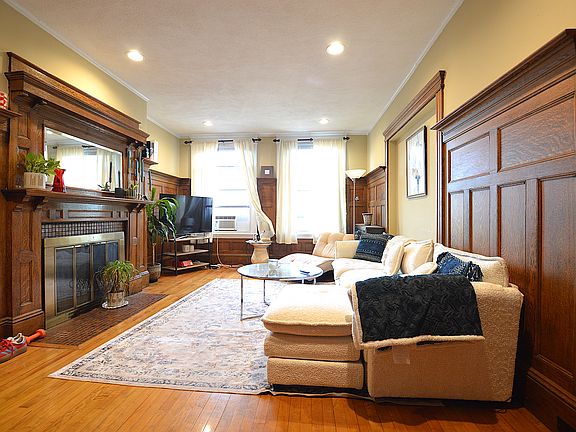 Beautiful top floor condominium. Living room has ornate oak wainscoting, wood burning fireplace, and exquisite china cabinet. Large, updated kitchen with dining area and striking exposed brick walls, granite counters, stainless appliances and pantry. Spacious master bedroom with walk-in closet, a second large bedroom and a third charming room/bedroom with exposed brick walls. This wonderful unit is close to both C and D lines, school, shops and restaurants at Washington Square, and accessible to park and recreation areas. Rent includes heat, hot water. Tandem parking ( 2 cars ) available for rent.