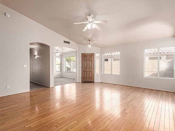 Welcome to this inviting 3-bedroom, 2-bath home with a versatile office/den perfect for work or play. This highly sought-after single-level floor plan features desirable north/south exposure and elegant wood flooring throughout the main living areas. The spacious great room boasts vaulted ceilings, creating an open and airy feel. The updated kitchen offers newer stainless steel appliances and seamlessly connects to the dining area ideal for entertaining. Retreat to the primary suite complete with dual sinks, a shower/tub combo, and a large walk-in closet. Enjoy easy-care landscaping and a sunny south-facing patio, perfect for relaxing or outdoor dining. Conveniently located between Downtown Chandler, Downtown Gilbert, and SanTan Village, you'll love having shopping, dining, and entertainment just minutes away!