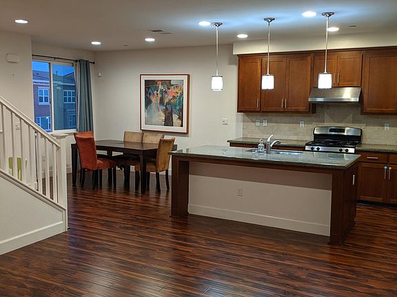 The house will be available after 9/20. -- 6 yr old home -- Desirable floorplan w/ 3 bedrooms, 3 full baths, 1622 sq feet -- Featuring open concept, high ceiling w/ plenty of natural lights. -- Gourmet kitchen w/ granite counter top, backsplash, supersized island, recessed lights, modern pendant lights, stainless appliances and french door refrigerator. -- Master room has a luxurious deep soak bathtub, standing shower, dual vanities. -- Walk-in closets in all 3 bedrooms. -- Dual-zone central A/C & heater. Tankless water heater. -- Hardwood floor in living, dining room and kitchen. Carpet in all bedrooms. -- In unit washer/dryer. -- Attached two cars tandem garage -- Two play areas in the community. Easy access to freeway 680/880/237, all major high techs, shops, & restaurants. Walking distance to new Mattos elementary school, light rail, new BART station, Great Mall & new shopping centers. Owner pays HOA fees (includes garbage), tenants pay all other utilities.