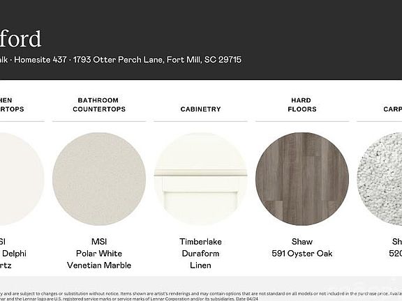 At the heart of this new two-story home is a spacious, open-concept floorplan designed for shared living and entertaining featuring a cozy fireplace nestled in the Great room. It includes a sprawling Great Room, a fully equipped kitchen with a center island and an adjacent breakfast nook, which extends further out into a desirable patio. With EVP stairs leading up to the top floor, there is a versatile loft surrounded by two secondary bedrooms and a tranquil owner’s suite. Plus, our signature Everything's Included program means you will get quartz or granite kitchen countertops, subway tile backsplash, ceramic tile, and luxury vinyl plank flooring at no extra cost! Welcome to Elizabeth, a sought-after master-planned community located in the heart of Fort Mill, offering 7 collections of new homes.