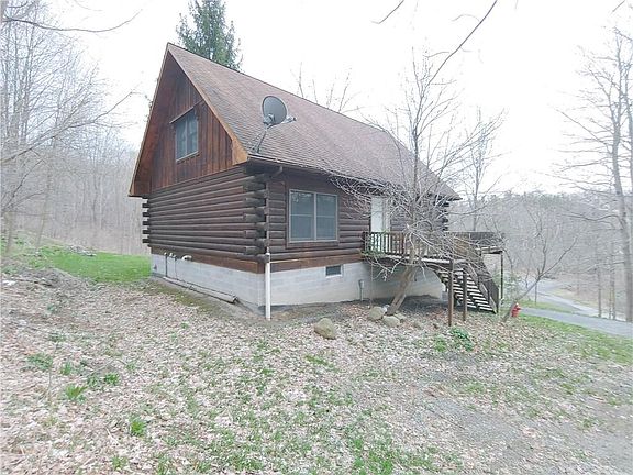 Step into your own private sanctuary, under 5 minutes from the conveniences of town. This special place can wisp away the cares of the world the minute you step foot on the property, as you're calmed by the sound of the water flowing through the beautiful Keuka Lake Outlet. The one & only owner built this 3BR log home in 90s. 2nd floor loft overlooks the open, vaulted Living/Dining area w/ EXPANSIVE frontal windows overlooking the Outlet & woodland. Full, Walk Out Basement has great finish potential (front wall is wood frame so could put windows in easily)! Expansive, Wrap Around Deck to take in the nature & beauty. Fairly new propane furnace.House offered w/8.3 acres $179,900 OR 45 acres $269,900. With a little love this place will shine; Huge sweat equity potential! Estate sale as is