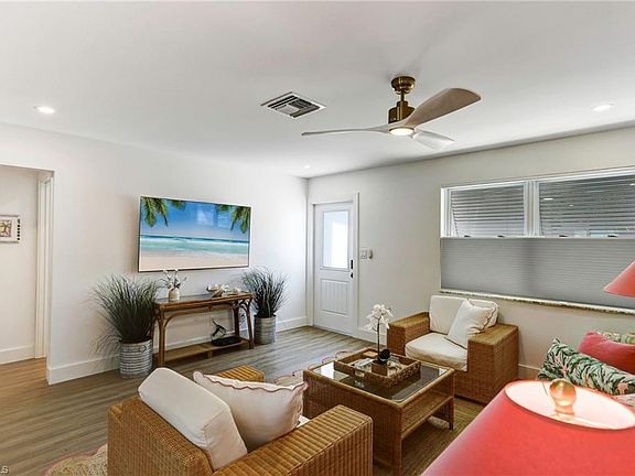 Available Annually for $3,000 per month. Utilities switch to tenant is rented annually. Welcome to your serene retreat in sunny South Naples, Florida! This charming vacation rental offers the perfect blend of comfort, convenience, and coastal charm. Located just a 10-minute drive from the pristine beaches of Naples, and a mere 6-minute car ride to the vibrant 5th Avenue South, this newly renovated duplex apartment promises an unforgettable getaway. As you step inside, you'll be greeted by a bright and airy living space adorned with coastal-inspired decor. Sink into the plush sofas, catch up on your favorite shows on the flat-screen TV, or simply unwind with a good book. The fully equipped kitchen is a culinary haven, featuring modern appliances and ample counter space, perfect for whipping up delicious meals. Enjoy your creations in the adjacent dining area, or take the feast outdoors to the private porch, where you can dine al fresco amidst the lush greenery of the private backyard. Retreat to one of the two cozy bedrooms, each offering a peaceful oasis for rest and relaxation. The master bedroom boasts a plush queen-sized bed and an en-suite bathroom, while the second bedroom features another queen sized bed, ideal for families or friends traveling together. Both bathrooms have been beautifully appointed with sleek fixtures and rejuvenating showers. Spend your days soaking up the Florida sunshine in the private backyard, where you can lounge on the patio furniture, fire up the grill for a barbecue, or simply bask in the tranquility of your surroundings. When you're ready to explore, you'll find an array of attractions just a short drive away. From sun-drenched beaches and world-class golf courses to upscale boutiques and gourmet restaurants, South Naples offers something for everyone. Whether you're seeking a relaxing beach getaway or an adventure-filled vacation, this charming duplex provides the perfect home base for your Naples escape. Book your stay today and make memories that will last a lifetime!
