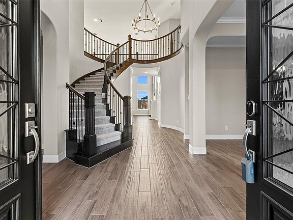 A masterpiece of design and craftsmanship, this 5-bedroom, 5.5-bath estate offers timeless elegance & modern convenience. The family room with a soaring ceiling & dramatic wall of windows opens the space with natural light. The chef’s island kitchen is a showpiece with granite counters, custom cabinetry, under-cabinet lighting, stainless steel appliances, gas cooktop, & a built-in desk. A private guest suite is tucked downstairs, while upstairs hosts an expansive game room & media room for elevated entertaining. Retreat to your backyard oasis with a resort-style pool enhanced by fire & water features, built-in firepit, spa, pergola, & a fully equipped outdoor kitchen. Luxurious details abound — a dining room with wood-accented ceiling & designer lighting, custom closets, and automated shades in the living, dining, & primary suite. With a whole-home generator, every comfort & convenience has been meticulously considered. Community offers incredible amenities & a vibrant Boardwalk.