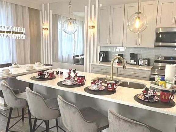 FULLY FURNISHED, Professionally decorated, investment or personal home, only minutes from Disney and all other attractions that Central Florida has to offer. Nice 4 bed 3 1/2 bath 2 story pool home, all renovated. This home would make a great vacation home or permanent residence. This property has the bonus of 2 master bedrooms with en suites on the second floor plus 2 other nice size bedrooms. Downstairs is a half bath with kitchen, dining room, living room/great room, plus an inside utility room. The home is located in the popular sub division of Silver Creek, which is near all amenities: shops, I-4, 192 and all major attractions. Great well maintained sub division. All kitchen appliances including washer & dryer are included. Home has a 2-car garage and screened lanai with private pool & spa. Lawn Maintenance, Cable and home exterior painting included in HOA fees. Call today to see your next home.