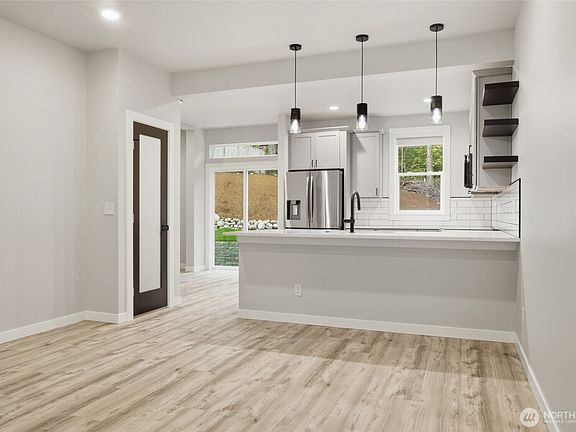 New construction in the desirable gated community of Clearwood! This beautiful 3-bedroom, 2.5-bath home offers inviting curb appeal and a thoughtfully designed open-concept layout. The kitchen features stainless steel appliances, shaker-style cabinetry, Quartz countertops a peninsula eating bar, and a modern PEX water distribution system. Additional upgrades include, pre-wired Level 2 EV charger, and central A/C for year-round comfort. Durable waterproof laminate flooring flows throughout the main living areas, with cozy carpet in the bedrooms. Upstairs, the spacious primary suite boasts a private bath and walk-in closet. Just blocks from Madrona Beach.