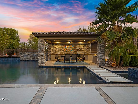 This is a two-story that features a resort style pool & backyard designed by Unique Custom Pools & Landscapes. 6 bed + office, 3.5 bath and a huge garage. Well-designed kitchen with pantry, large center island, and beveled edge granite counters w/ Viking Appliances and the best built-in crushed ice maker. Spacious breakfast area with access to the covered porch/backyard and a Family room with large sliding glass doors. The Primary bedroom includes huge walk-in closet, along with 2nd walk-in closet luxurious primary bath with soaking tub, dual vanities, and glass-enclosed shower. Second floor features walk-in closets in every room, a large loft w/ Entertainers bar and a theater room. Features Level 5 Permanent House lighting and Control 4 Smart home system!