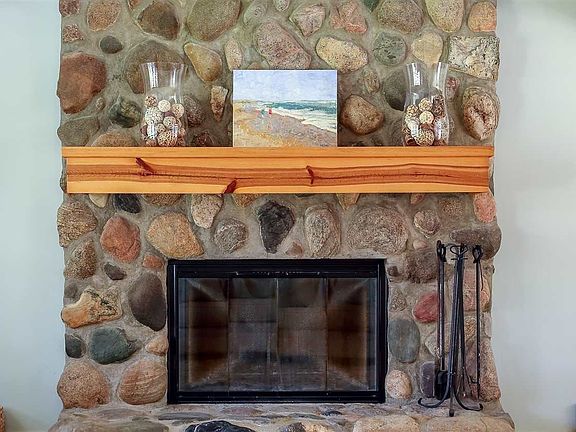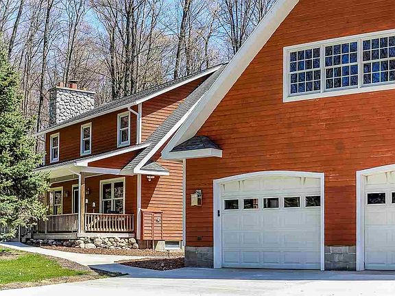 Tucked back into 8 acres of forest, this 4-bedroom, 3-bath home is the ideal setting to reconnect with nature, but still benefit from every modern amenity for ultimate comfort and convenience. The home's open floor plan features a recently remodeled kitchen with new cabinetry and high-end quartzite stone countertops, hickory floors throughout the living areas, and a grand wood-burning fireplace with locally sourced stone. A large lower-level with walkout is prepped to be finished off, with the electrical and plumbing neatly tucked into the 9' ceilings. There's plenty of room to play in the attached 2-car heated garage, with an adjacent storage/mudroom that opens into another large heated workshop and storage area. Above the garage is a massive mother-in-law suite or the perfect Airbnb space, easily accessed through a breezeway yet still separate from the main house. Walkable to Lime Lake and just a short bike-ride from Lake Michigan's stunning Good Harbor Beach, this beautiful and well-appointed home truly has it all. There's nothing left for you to do but unpack and settle right in.