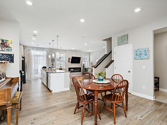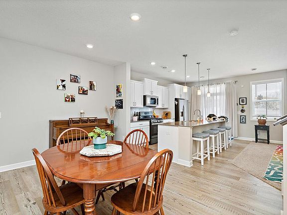 Better than new construction. Welcome home to this lovely 3 bedroom, 3 bath, 2 car garage townhome located in highly sought after Pioneer Vista community of Chaska. Home features light & bright, open floor plan. Home features "Smart Home" technology. High level finishings throughout the house including quartz counters, chrome accents, recessed LED lighting, colorful electric fireplace, ring doorbell/ security system, WiFi enabled garage door and front door, keypad entry into house from attached garage. Two-story entry. Oversized kitchen island and slate GE appliances. Main floor 1/2 bath. Patio on main floor overlooks green space. 3 beds up plus loft. Spacious primary bedroom with French doors and private primary bath with walk-in shower and dual vanity. Primary bedroom walk-in closet. Upper level laundry. Upper level full bath. 2 additional beds on upper level. Convenient to Hwy. 212, shopping, schools, recreation & more. Move right in and enjoy.