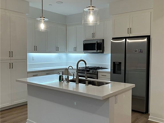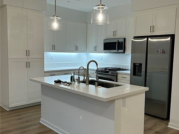 Corner-unit model homeKitchen with islandWalk-in closetLaundry room with sink