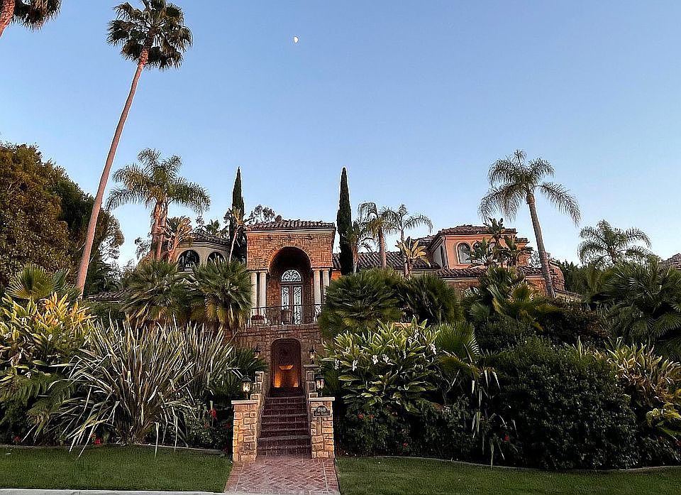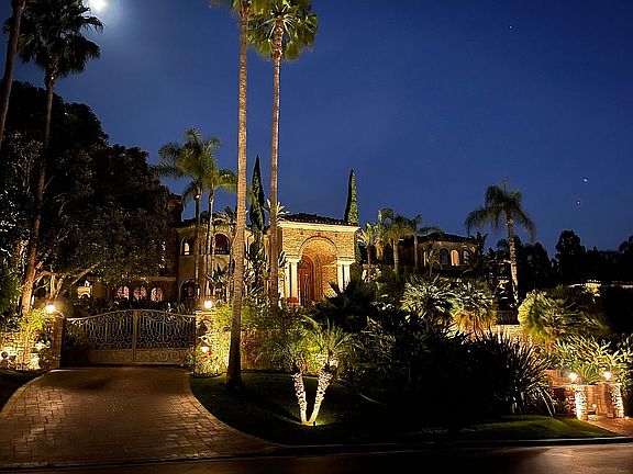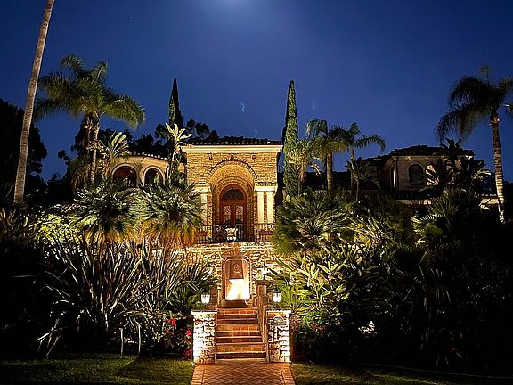 Palacio Toscano de los Suenos is a 1995 Johnny Moratta originally built and now completely reimagined home that has been the subject of a meticulous extensive multi-million dollar interior and exterior whole house remodel in a high end old world palatial Tuscan style that has taken years to complete through 2023, and which is not included in the Zillow Zestimate. Approach the estate and you see custom stone walls and imposing custom Mexican crafted Iron gates to enter the property. Enter the house through custom Caesar Mendez designed 12' solid wood and iron double doors and you are greeted by massive 20' tall windows overlooking a stunning 40' natural stone water fall and tropical resort back yard with 1/2 mile of trails, entertainment pavilion, bocce ball court and numerous intimate spaces and vistas. The home now features extensive custom hand crafted Mexican stone, Hector Huerta designed and Liz Huerta faux painted iron work, and solid 8' Alder carved wood doors with clavos throughout; antique beams, hardwood and travertine tile floors, and antique faux walls meticulously hand painted by artists (one of the rare old world Tuscan homes not whitewashed from bad advice from realtors). Both the living room and great room have custom designed and crafted 12' Cantera stone fireplaces reminiscent of old world cathedrals. These details created by master-craftsmen are not mere accents, but generously define old world palatial Tuscan living in over 10,500 sf under roof with capacious 12'-25' ceilings, an over-sized 4 car garage, remodeled cabana with outside kitchen, BBQ and sitting and dinning areas plus a separate palapa, 6 bedrooms (including 5br en-suites) and 8 completely remodeled baths (including a spa master bath with steam room), 25 rooms total, including a remodeled kitchen with the latest state of the art high end appliances, luxury movie theater, expansive great/family room, arcade room, state of the art powerlifting gym, and a bibliophile's dream 4 room two story newly restored wood paneled library with custom iron banisters, and executive 2 person office. You will find extensive lush tropical landscaping and 20 Tuscan fountains throughout the property to give a peaceful and soothing old world feel with intimate spaces and gardens throughout the property with over two dozen stone bench and two large garden retreats, walking trails, waterfalls, bocce ball court, and entertainment areas along the way that include breathtaking mountain/valley views. Everything is high end with an old world feel, including rustic roof and chimney details, and ornate rustic high end copper gutters and chimney caps. The home has a new 4 zone web enabled smart HVAC system, high end water smart heaters and water treatment system, and state-of-the-art fiber optic gigaplex panoramic wi-fi, multi-media and the property has a multi-sensor multi-modal monitored visual and infrared high-end overt deterrent and covert surveillance security system monitoring every inch of the property with power and access security redundancy for added security and system integrity. Neighborhood Description The only gated community in RSF with 24hr armed security. Includes an equestrian center, parks, horse and hiking trails, lakes, boating, fishing, club-house, tennis courts, and associated Fairbanks Ranch Country Club.