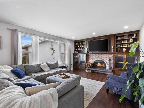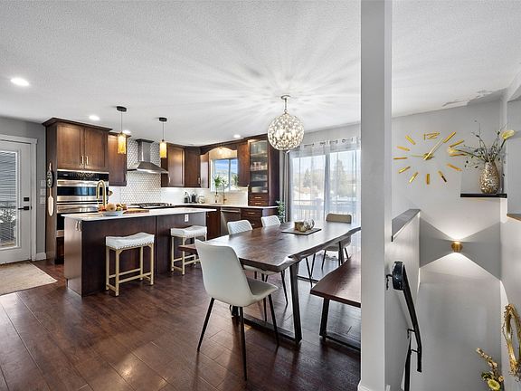 Tucked away on a quiet cul-de-sac, this beautifully updated 4 bedroom plus den and office basement-entry home offers the perfect blend of comfort, style, and functionality. The heart of the home is a stunning kitchen featuring a large island with eat-at bar and 2nd sink, stone countertops, custom paneled fridge, tiled backsplash, gas range, plus 2nd built in oven and convection microwave. Off the kitchen is access to a large deck with pergola - perfect for entertaining! Flowing seamlessly from the kitchen is the dining area with 2nd access to the deck and leads to the bright living room complete with built-in cabinetry and a real wood fireplace for cozy winter evenings. Upstairs you'll find two spacious bedrooms, a versatile den, and a sleek 4-piece modern bathroom. The basement adds even more flexibility with a 2 bedrooms, office, 3-piece bathroom, generous rec room, and a well-equipped laundry room with utility sink and storage. Step outside to your private oasis: a heated inground pool, lush greenery, a grassy area for play, and a handy shed. With ample parking and close proximity to all amenities, this home checks every box for comfortable family living and year-round enjoyment. All meas approx