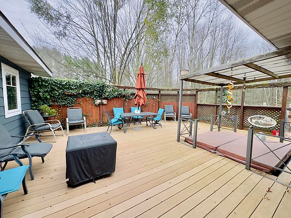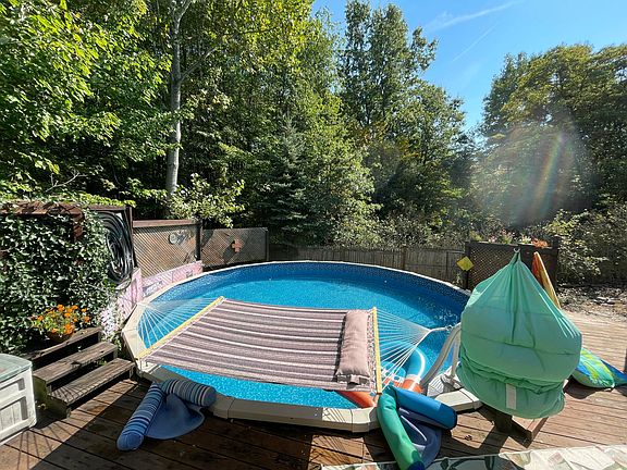 This house is set up for FUN! You'll spend quality time in the oversized living room with plenty of natural light through the large windows, open to the updated kitchen and a slider leads to a huge deck, mostly converted to trex decking, overlooking the above ground pool. Lower level has a ton of space to roam - family room with door to the outside, full bath and laundry room and another big rec room ready for many new uses. More closets and built-in shelves than you'll know what to do with. House backs up to a large plot of unused land with a pond near by, makes it feel like you are in the country.