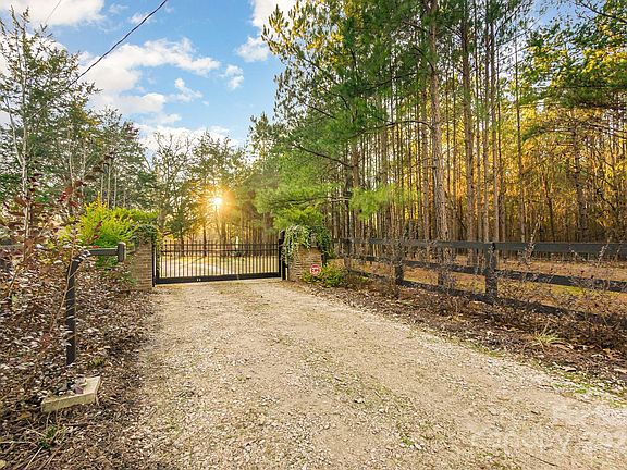 Country living at its best! Capture the private serenity of this custom home surrounded by a 5 acre wooded canopy. Beautiful tree lined driveway leads to gated entrance. Front entry includes vaulted wood ceiling, adjoining designer kitchen showcasing quartz large island w/ wine fridge & plenty of storage. Don't miss the huge walk in pantry! Primary en-suite boasts luxurious spa-like walk in shower w/ rain shower head, quartz vanities & custom closet! 1500+ sq ft shop heated & cooled includes a bar/entertainment area, full bath, storage room & wood working shop! Multi-purpose spaces for any trade! You’ll love relaxing on the rocking chair front porch, screened back porch or fire pit area! Chef's dream w/ 2 built-in grills in the porch. A fenced in garden to grow your own veggies w/ irrigation! The large chicken coop will make life easy w/ its self feed & water system. Multiple fenced in areas, perfect potential for dog kennels! This property is a dream + Award winning Clover schools!