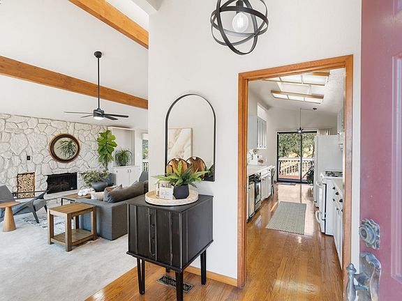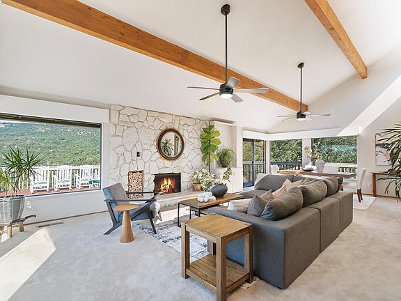 Welcome Home: Enchanting light filled, custom built Modern Mid-Century Home, set upon a 3.92 Acre private gated estate, amongst the idyllic Green Valley Hills, to offer the perfect aesthetic combination of comfort, convenience and bliss. All that you have ever dreamed of having in a home has today come true. This is a rare and exceptional opportunity. Boasting an open design, high ceilings, ample windows, hardwood floors, 3 fireplaces, primary suite with en-suite bathroom, separate living, family and dining rooms, freshly treated wrap around deck, Culligan whole home water purification and softener system, owned 32 panel solar array with NIM2 Solar monitoring System, 3 insulated newer storage sheds, detached office with AC, newer 5 ton HVAC central AC, outdoor hot tub connections and 120-240V backup electrical plug-in. The spacious estate is legally subdividable for additional residential structures. Explore endless possibilities, whether as an equestrian property, a second home site, or simply to enjoy the mature trees and natural beauty. Easy access to the Green Valley Country Club, top rated schools, parks, trails, upscale shopping, and freeways, Must See Today