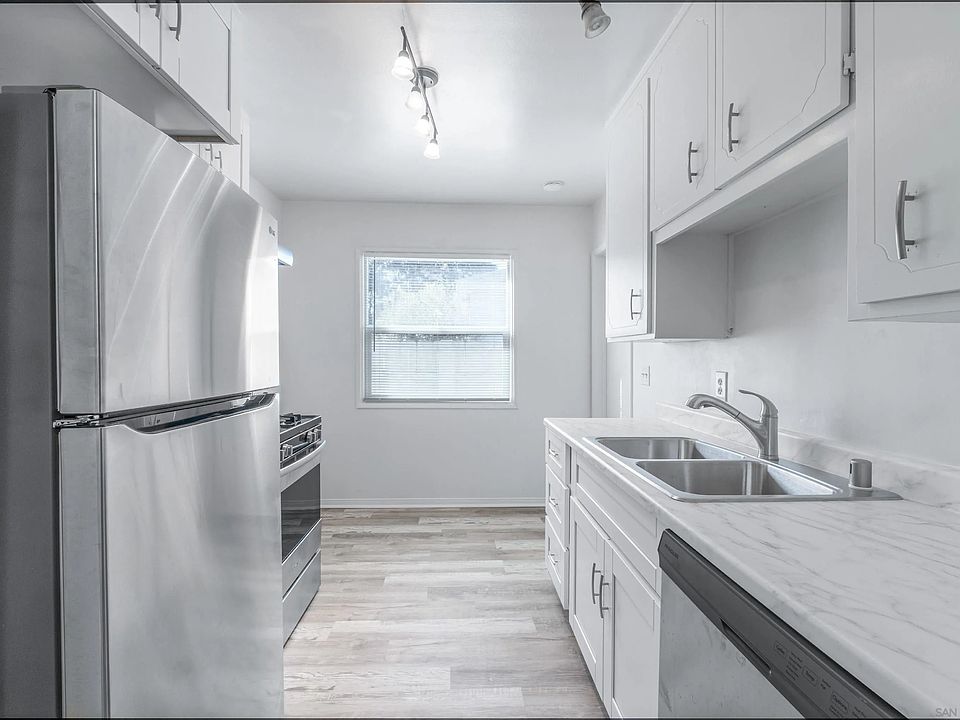 Charming 3-bedroom, 1-bath home featuring a spacious floorplan with newer vinyl plank flooring and recent upgrades throughout. This property offers a large, private yard perfect for entertaining, gardening, or potential expansion. Nestled in the heart of Lemon Grove, this home sits in a quiet, established neighborhood known for its community feel, mature trees, and walkable streets. Conveniently located near the Massachusetts Avenue trolley station, you'll have quick access to public transit and major freeways, making commuting a breeze. Enjoy being just minutes from local schools, shopping centers, casual dining spots, and family-friendly parks. Only 15 minutes from Downtown San Diego, Lemon Grove offers a unique blend of suburban comfort and city convenience, making this home an ideal choice for buyers looking for both value and location.