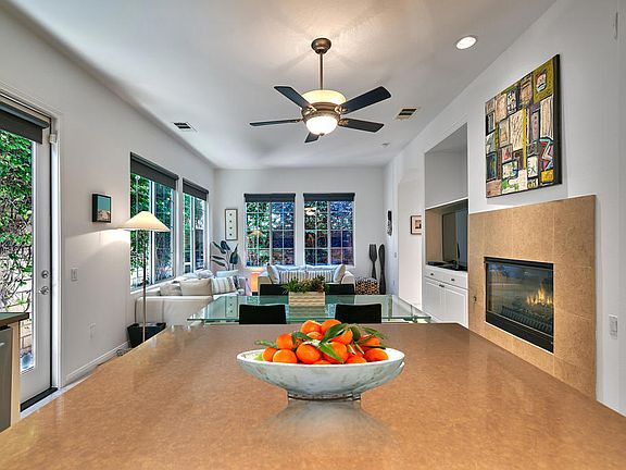 Welcome to Pintura a small village atmosphere with cobblestone streets and a Tuscany village ambiencenestled in South Palm Springs. This recently updated 2 level home is stylish, cozy and low maintenance in one of the best neighborhoods in Palm Springs. This home is truly move-in ready, with upgrades including Italian travertine floors throughout main level, Taupe Caesar stone slab kitchen counters, backsplash, and Happy Hour island. The appliances are all stainless steel and a branded SUB-ZERO refrigerator. Baths include travertine floors, showers and countertop plus solar shades. This home features dual oversized primary suites, with walk-in closets and spectacular mountain views from the main primary suite, the Office/loft and the balcony. Pintura, complete with cobblestone streets is a gated community only minutes from downtown Palm Springs, and minutes to many of the best hiking trails the desert has to offer, with Koffi and lots of neighborhood restaurants and pizza bars near by. Attached large two-car garage with an epoxy floor. Interior Measurements: 19'-10' wide x 20' deep. Don't miss this exceptional Single-Family Home!