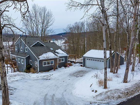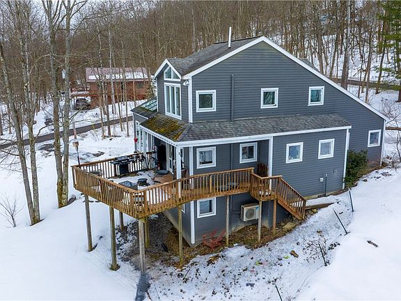Welcome to this tastefully updated contemporary chalet-inspired retreat, located 1.2 mi from the entrance to Greek Peak Ski Resort. Light & bright open floor plan that unifies the Kitchen, Dining area, and Living Room—perfect for casual family living and entertaining. The spacious Living Room features an awesome stone hearth with gas fireplace and beautiful tongue & groove vaulted ceiling.