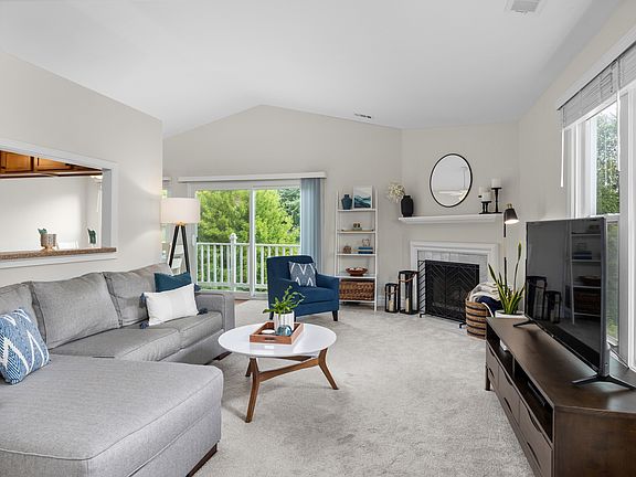Welcome to your move-in-ready 2-bedroom ranch-style townhome in the highly sought-after Hampton Farms Subdivision! This charming second-floor unit offers spacious single-level living with vaulted ceilings, neutral paint throughout, and stylish white 6" trim and raised panel doors. Enjoy the comfort of a Primary Bedroom with New closet doors and shared spa-like bathroom, beautifully remodeled with subway tile shower surround, quartz vanity top, Moen fixtures, and modern lighting and fan. 2nd Bedroom with Vaulted ceilings and walk in closet with custom closet organizers (2019). The open-concept layout features a bright living space with a newer sliding glass door (2022) leading to a private balcony perfect for morning coffee or evening relaxation. The kitchen shines with stainless steel appliances (2021) including a refrigerator, dishwasher, and stove, paired with updated pendant lighting and ceiling fan (2019). Added linen/storage closet (2019) for even more functionality. Other 2019 updates include: Central air and Nest thermostat, Levelor blinds/vertical blinds throughout, Water heater, Carpet, Washer & dryer, Bifold doors and light fixtures in foyer, hallway, and kitchen. Located in award-winning District 54 and 211 schools, this home is also close to the Metra, major expressways, O'Hare Airport, and Woodfield Mall's shopping, dining, and entertainment. Outdoor lovers will appreciate easy access to Busse Woods bike paths and for Golf enthusiast Fox Run Golf Course just minutes away. Don't miss this updated, turnkey gem in a prime location-schedule your private tour today and make this beautifully maintained townhome yours!