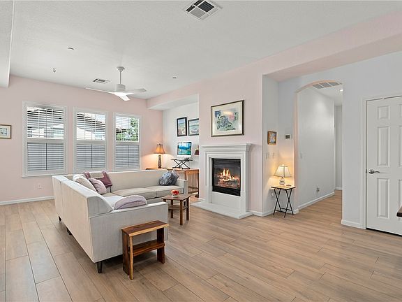 Comfortable two bedroom home with one car attached garage and additional parking space. Garage and entry on the lower level with all the living space one flight up. This property has many upgrades including tile floors through-out. The secondary bath has been renovated with dresser style vanity, Toto toilet with "tushy wash" and designer paint. There are two Hunter fans, one in the living room and one in the Primary bedroom. The Primary bath has two sinks, a large tub plus a separate shower, walk-in closet, plus a private WC room with Toto toilet and added Boss bidet. The kitchen is open to the living area with island, breakfast bar, granite counters, pantry, plus brand new refrigerator and dishwasher. The bedrooms are located on opposite sides of the living space for extra privacy. Convenient to many shops and restaurants, close to wetlands, and within a community that has nice amenities including a swimming pool.