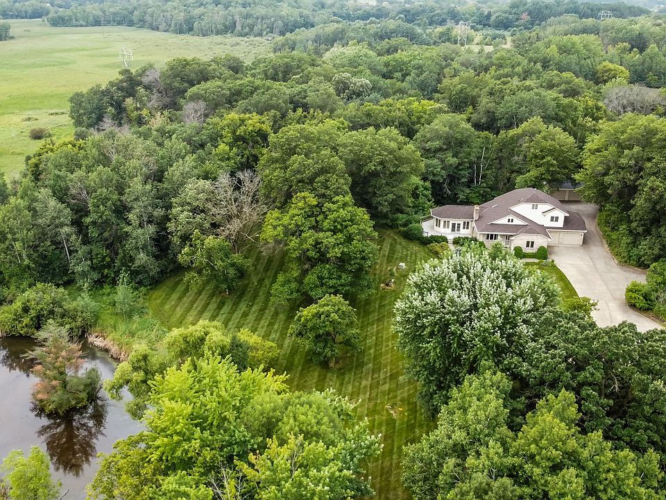 Welcome to your private retreat on almost 13 scenic acres featuring a serene pond, abundant wildlife, and extensive space for a growing family, hobbies, storage, or business needs. This well-maintained two-story home offers a warm, inviting interior with custom oak built-ins throughout and a main-level wet bar, perfect for entertaining. A hidden built-in safe provides secure storage for firearms or valuables. The unfinished basement adds over 1,100 sq ft of potential living space, ready for your custom touch—ideal for a rec room, gym, or guest suite.