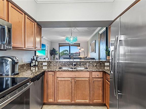 Granite countersWestern facing lanaiImpact windowsCrown moldingTile on the diagonalStainless steel appliancesWalk-in closets