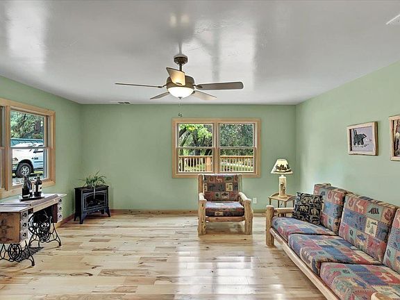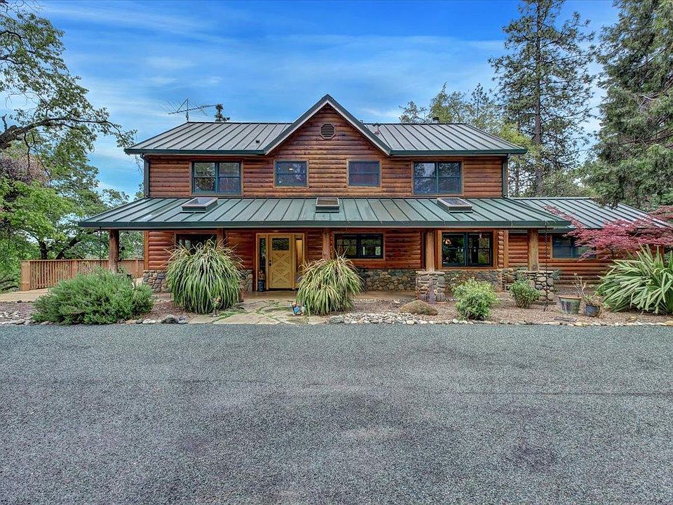 Classic country home w/ 2x6 construction & milled log cedar siding on 12.1 acres. The great room, kitchen/dining combo is perfect for entertaining. Separate living room, spacious main suite w/large walk-in closet w/vanity and sink & custom Alder cabinets, large enough for a nursery! This amazing home has 4 generous-sized bedrooms, 3 baths, stunning hickory flooring throughout the living area and Alder kitchen cabinetry. Walkout onto the massive decks through the beautiful Anderson French doors from several rooms to take in the amazing views of the Sierra's. Enjoy the serenity, including wildlife and birds of all kinds. There are numerous varieties of trees including cedar, pine, oak and manzanita to name a few. Heated floors in master bath and laundry. Custom masonry, natural stone inside and out. Solid Alder interior doors, imported from Montana, Anderson windows, central heat & air and a woodstove. On-demand propane water heaters,2-car garage and huge shop/barn. Partial RV hook ups