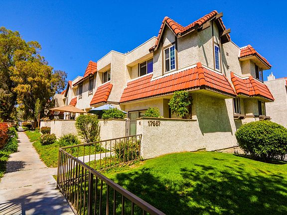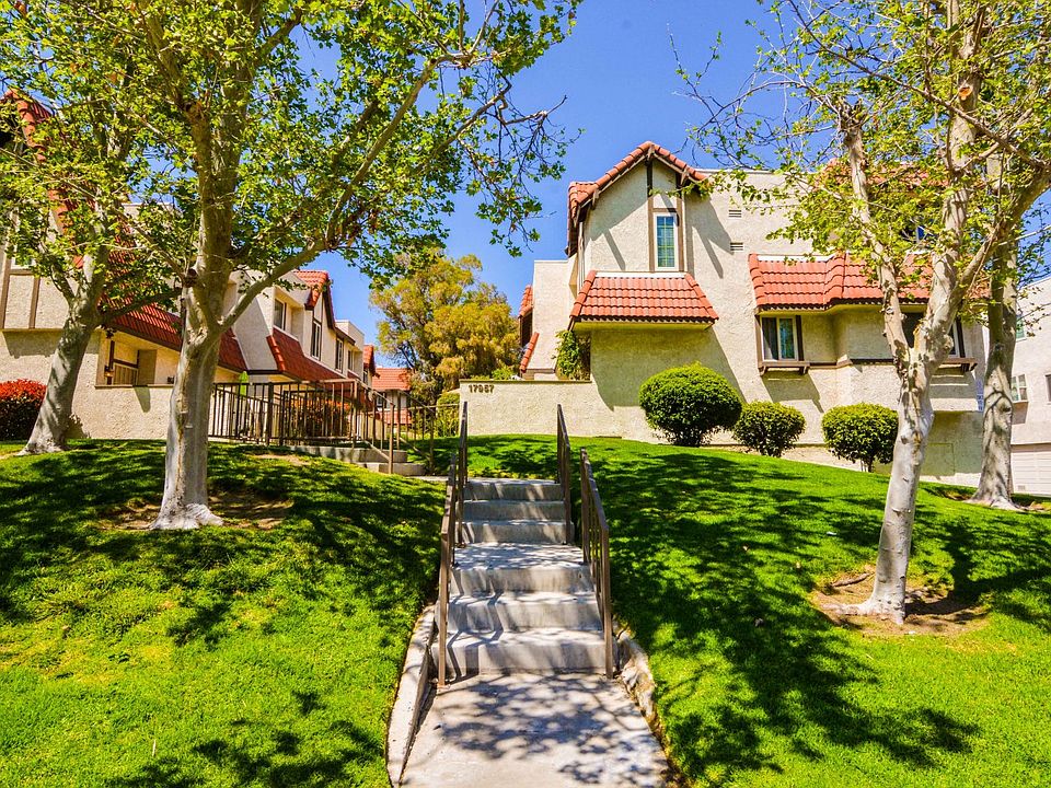 Immaculate Townhouse nestled in Canyon Country that offers a resort style like vibe with a beautifully maintained community that offers a pool, play area and much more! This is a charming end unit Townhome of 3-bedrooms and 3-bathrooms complete with beautiful wood and carpet flooring, high-ceilings and baseboard moldings! As soon as you enter this unit you are greeted with the living room where you will find a vaulted ceiling, a decorative corner fireplace and sliding glass doors that lead out to the private patio. A few steps up from the living room will be the dining area and kitchen, complete with ample counter-top and cabinet space. This unit also features 2-master bedrooms with walk-in closets and a private bathroom, lots of storage space, an attached 2-car garage and laundry hook-up! Welcome to 17957 River Circle!