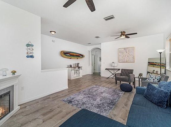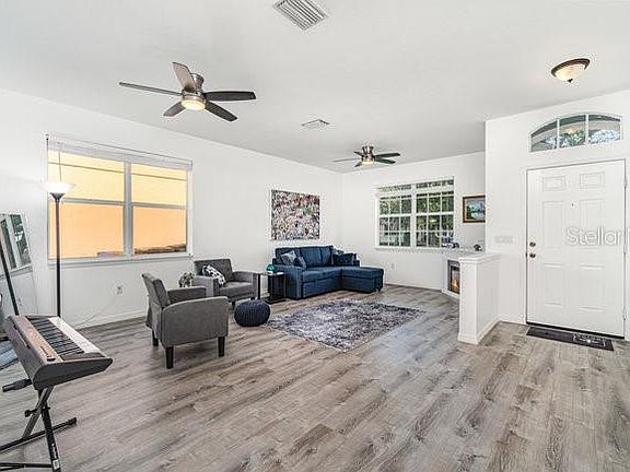 Discover this beautiful maintained 3-bed, 2-bath home in the sought-after Lakeside Plantation community. Featuring an open floor plan with 9-Ft ceilings and luxury laminate plank flooring, this home offers comfort and style throughout. The spacious living area flows seamlessly into a screened Lanai with peaceful wooded views through 8-Ft sliders. The modern kitchen boast stainless steel appliances, a large center island with a granite countertop, a deep stainless steel sink, white cabinetry, tiled backsplash, Corian counters, and a walk-in pantry. The Master suite includes tray callings, Lanai access, dual walk-in closets (one with custom built-in's), and a tiled shower. Two guests or a home office. Enjoy a private backyard oasis perfect for relaxing or entertaining. Lakeside Plantation offers resort-style amenities: pool, hot tub, tennis, pickleball, basketball, fitness center, library, and clubhouse with social events. Low HOA fee's include lawn care. A no flood zone. Just minutes from shopping, dining, and Gulf Coast beaches
