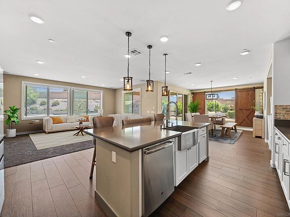 . 1796 Starlight Ave in Beaumont CA is an incredible 0.45 acre property with a resort style backyard. Enjoy a custom Pebble Tec salt water pool with waterfalls, light bubblers and a huge 10x20 swim step plus a large spa for relaxing. The yard features a covered patio with built-in heater, a large shed and an impressive variety of fruit trees including apple, apricot, grape, orange, lemon, lime, plum, olive, cherry, strawberry, blackberry and more. Inside boasts a spacious, open layout with tile wood plank flooring throughout the downstairs. It has a downstairs master suite, large loft, accent walls and built in speakers throughout the home. In the kitchen you will find thoughtful upgrades that blend style and functionality. Truly a one of a kind home with comfort function and luxury in every detail. The community also includes three pools, sports courts, security bbq areas and parks.