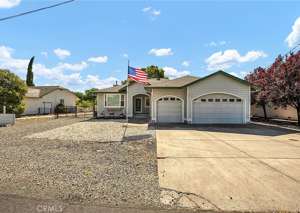 - Parking features: Door-Multi, Direct Access, Driveway Level, Driveway, Garage Faces Front, Garage, Gravel, RV Potential, RV Access/Parking, Workshop in Garage