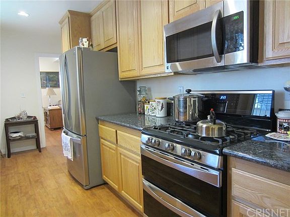 Welcome to this lovely home in South Reseda's finest neighborhood. Extensive upgrades/remodeling in 2012. Features incl: Granite counters in kitchen, butler's pantry & bathrooms. Water proof & almost indestructible vinyl plank floors that look just like wood without the maintenance. Dual pane vinyl windows throughout. All new doors & hardware. Upgraded electrical panel, plugs & light switches with dimmers. Fan lights in 3 bedrooms & living room. Tankless water heater. Solar panels paid in full by owner. 3 toilets are dual flush. Cedar lined closets. Copper plumbing. Alarm system. Master suite includes en suite bathroom with built in shower seat, shampoo niche, linen closet & large vanity area. Wall to wall master closet has frame-less, beveled mirrored doors. Built in cupboards & adjustable shelves for added storage in master. The updated kitchen inc: stainless appliances (double ovens, microwave oven, dishwasher, fridge), loads of cabinets & breakfast area. Attached butler's pantry has more shelves, cupboards & counter space for entertaining & storage. Spacious living room has built in entertainment wall w/lighted glass display doors, enclosed cupboards & TV space, fireplace w/wood mantle & gas starter. Formal dining area w/recessed lights. Huge inside laundry rm with even more storage cupboards & utility sink. Back yd has covered patio, luscious orange tree, 2 car detached garage, auto sprinklers throughout. Newer HVAC & Roof too!
