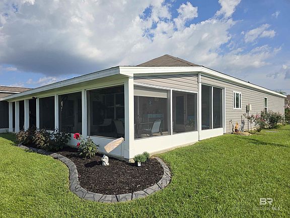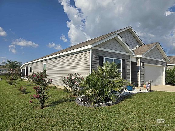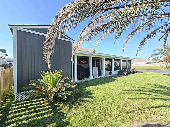 Welcome to your dream home in the Hidden Lakes community of Foley! This Gold Fortified home is nestled beside the picturesque pond at Hidden Lakes. Beautifully upgraded 4-bedroom, 2-bath home offers 1,787 sq ft of comfortable living space and is perfectly positioned with water views on two sides—bringing peace, privacy, and stunning scenery right to your doorstep.Step inside to find an open, airy floor plan with stylish upgraded light fixtures and thoughtfully designed spaces perfect for everyday living and entertaining. The heart of the home flows seamlessly into the star feature: a massive screened-in patio complete with a outdoor grilling area—ideal for cookouts, relaxing evenings, and enjoying the coastal breeze.The exterior is just as impressive with lush landscaping, palm trees, concretestamped curbing, widened driveway and a front door of custom glass inserts to radiate lighting into the home, colorful flowers, and a spacious Graceland storage shed for all your tools and toys.This home truly has it all—space, style, and serene surroundings—all within minutes of Foley's shopping, dining, and beaches. Don’t miss your chance to own this gem in Hidden Lakes! Home has many smart home features! All information and measurements deemed important are to be verified by buyer/buyer’s agent. Buyer to verify all information during due diligence.